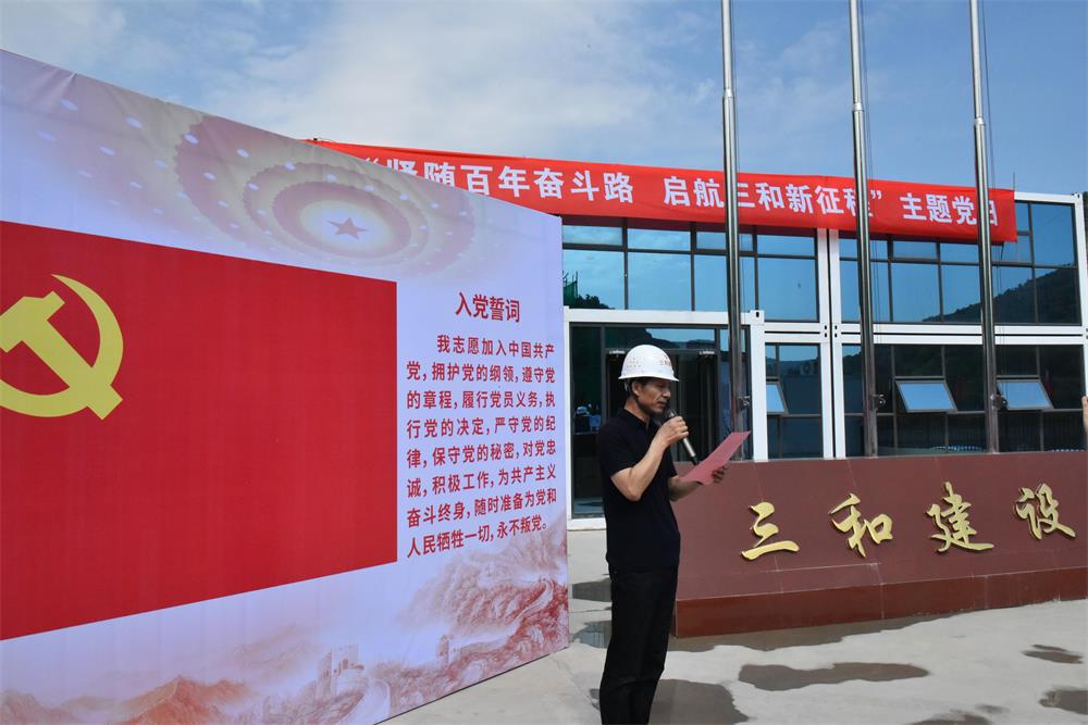 在项目部,面对鲜红的党旗,10名预备党员进行了入党宣誓,牢记共产党员的初心使命。