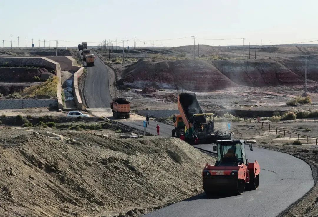 为确保工期进度,面对新冠疫情的反复频发和当地恶劣的戈壁气候,风城水库项目团队迎难而上,发扬无畏险阻、勇毅前行的拼搏精神,从前期详实地计划部署到加班加点地施工作业、召开各类动员会议、紧而有序地进行路基整理、沥青摊铺等施工作业,项目人员、施工人员、各类机械设备满负荷运转。