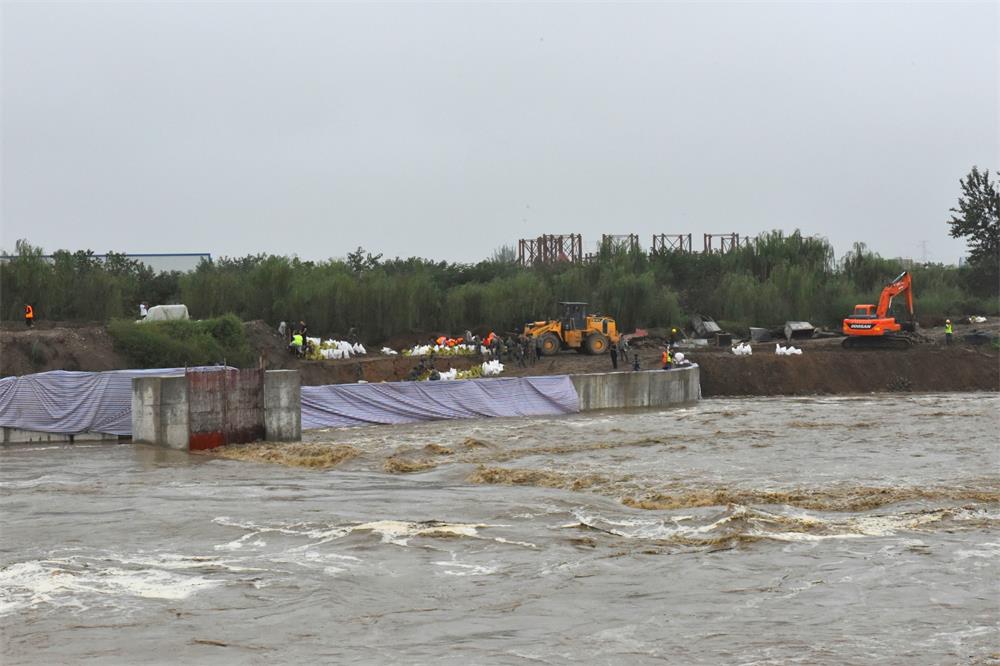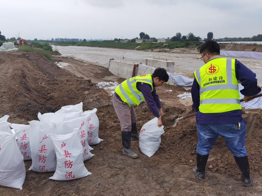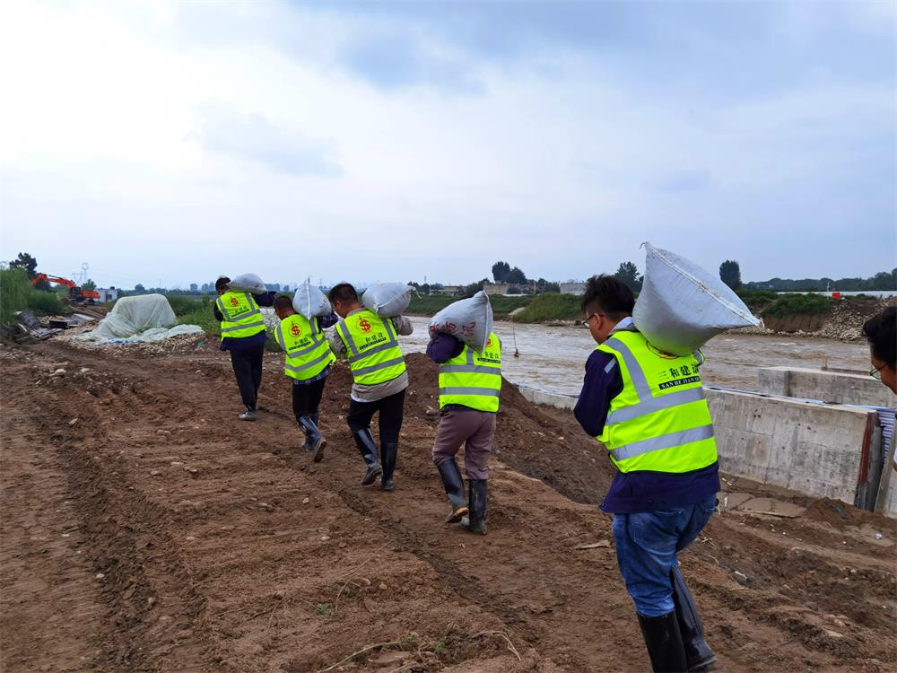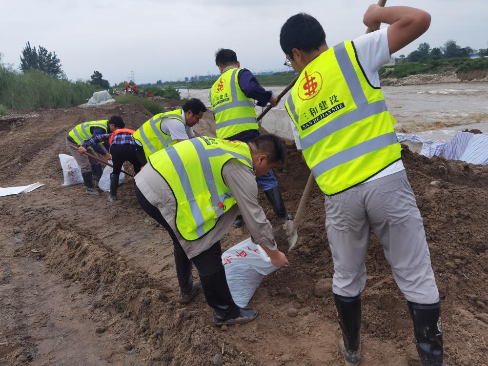 9月1日上午,三和公司总经理王小平直接从延安项目一线奔赴涝河大桥,现场指挥应急抢险。抢险小组充分发扬三和人特别能吃苦、特别能战斗的工作作风,不惧艰险、顽强奋战,对堤防薄弱部位进行加固,对已完工程进行成品保护,终于安全排除险情。