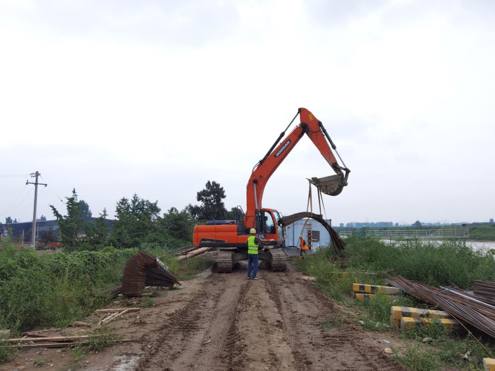 8月31日晚,涝河水位迅速上涨,涝峪口水文站实测流量达到180m³/s。三和公司副总经理林忠作为项目分管领导,第一时间赶往项目工地,靠前指挥、明确分工、夯实责任,指挥协调各项工作。项目部根据安排部署立即启动应急预案,连夜组织20人的抢险小组在左右岸河堤进行巡查,拉好安全警戒线,设置现场照明灯,准备好充足的沙袋、铁锹、反光背心、救生衣等防汛抢险物资,抽调两台挖掘机及装载机,严防死守、看紧盯牢,确保随时发现并排除险情。