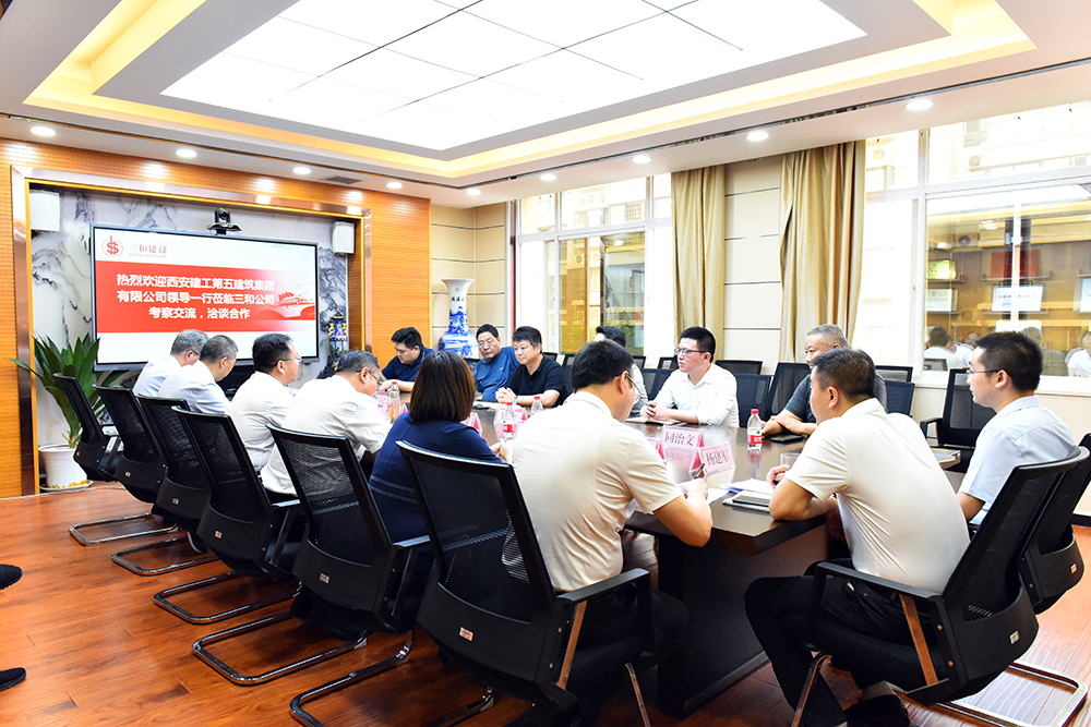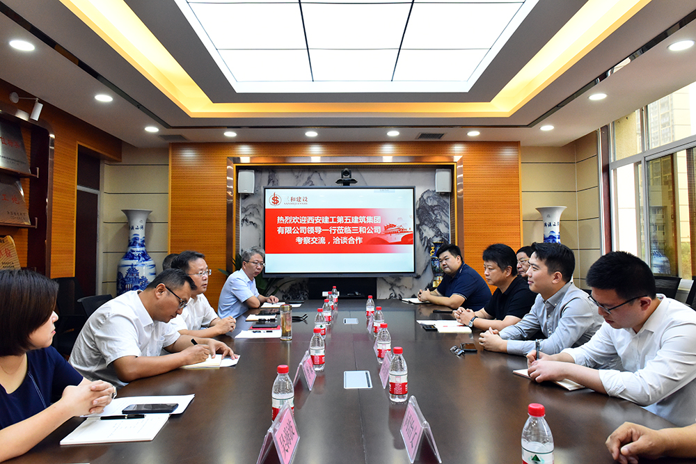 9月2日上午,西安建工第五建筑集团有限公司副总经理郑旋、总经理助理栾广琦等一行4人到陕西省三和建设工程有限公司洽谈项目合作并进行考察交流。