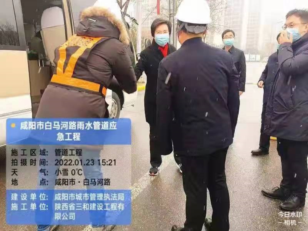123日下午,咸阳市市长卫华与市委常委、副市长王飞一及市级相关部门负责同志到陕西省三和建设工程有限公司承建的白马河地铁应急排水项目工地检查调研。