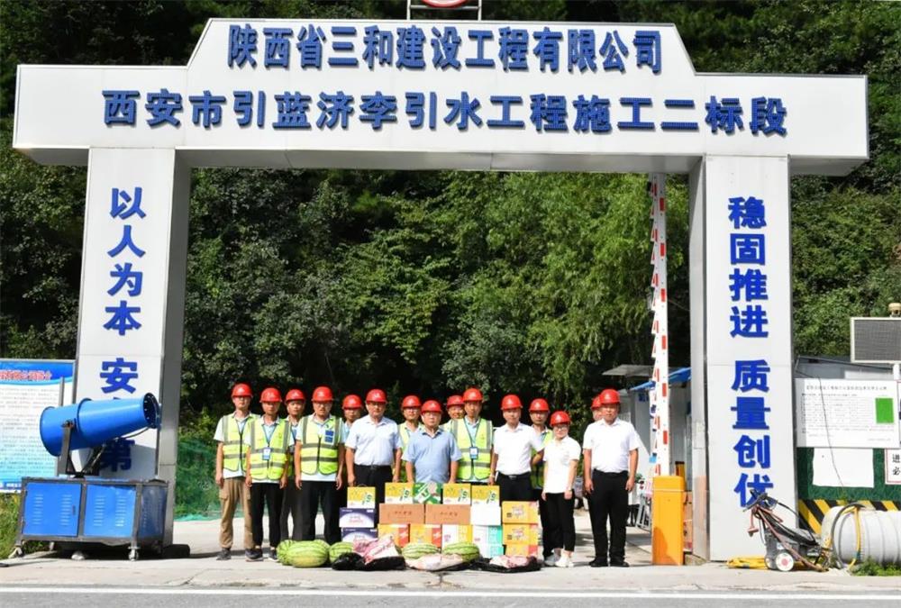 为切实保障好高温下一线职工的安全健康权益,8月1日,三和公司开展了以“战酷暑 保安全 促生产”为主题的“送清凉”慰问活动。执行董事王小平带队深入西安市引蓝济李引水工程二标项目现场,为奋战在项目一线的职工送去防暑降温用品。