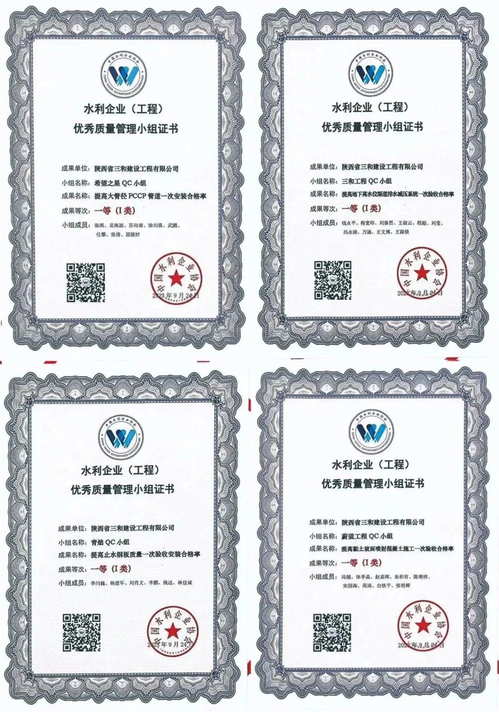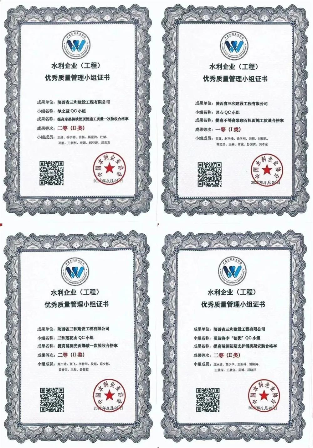9月24日,在刚刚结束的2023年度水利企业优秀质量管理小组成果颁奖典礼上,陕西省三和建设工程有限公司参评的《提高黏土坡面喷射混凝土施工一次验收合格率》等8项QC成果喜获Ⅰ类成果奖5项、Ⅱ类成果奖3项,成果数质量再创新高。
