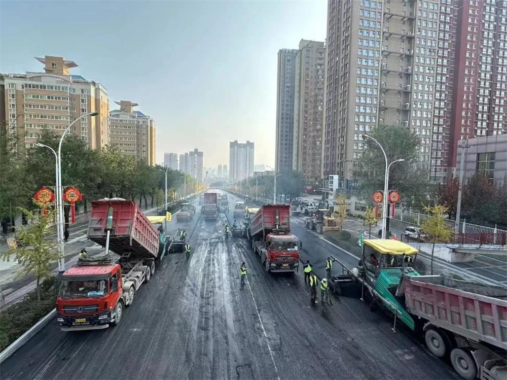陕西省三和建设工程有限公司承建的咸阳市迎宾大道提升改造工程经过6个月的紧张施工,毕塬路-文林路段于11月13日进行主干道混凝土沥青铺设,标志着该工程施工进入最后阶段。