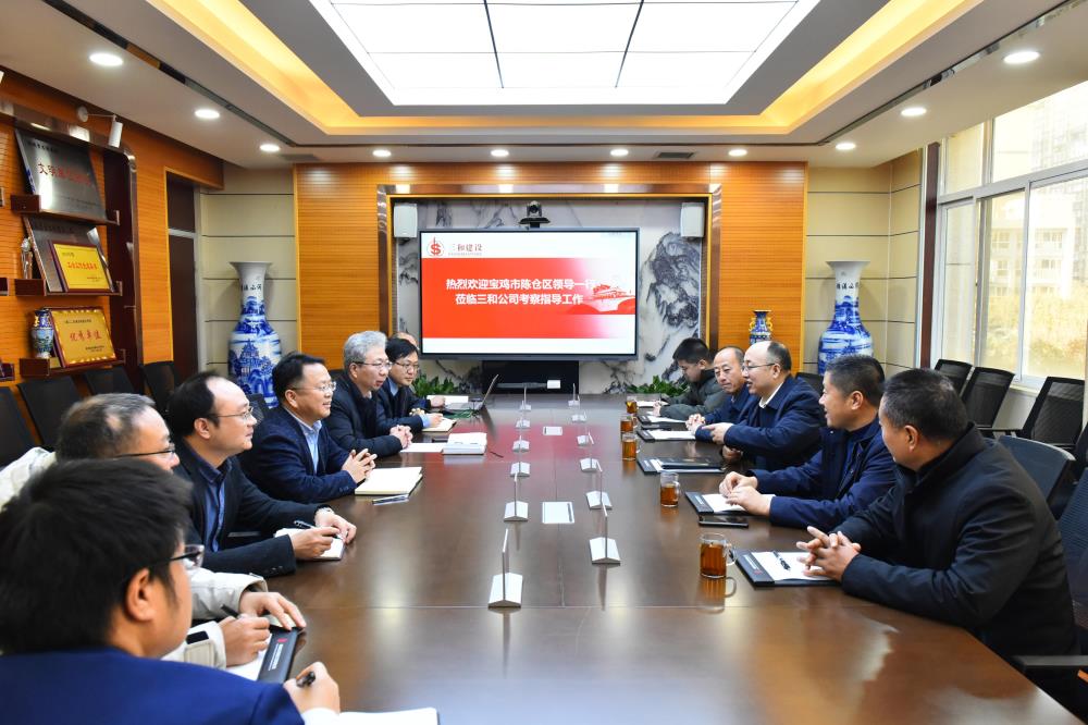 12月21日上午,宝鸡市陈仓区区委常委、副区长王晓峰,区住建局局长张建新,区生态环境局局长王方全、副局长路永超一行到陕西省三和建设工程有限公司考察调研。