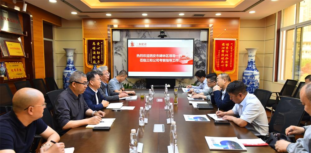 4月23日上午,西安市碑林区人大常委会主任阮波、区住建局局长张庆、长乐坊街道办党工委书记赵权、长乐坊街道办主任武静忠一行到陕西省三和建设工程有限公司走访调研。