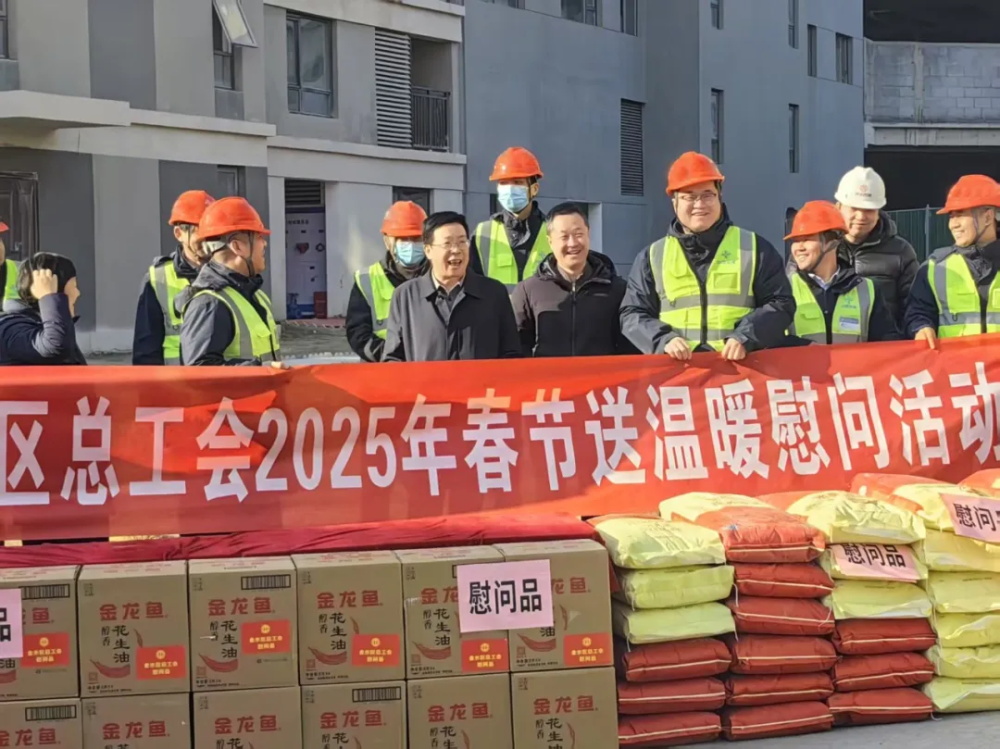 在施工现场,慰问组向在寒冬中坚守岗位、全身心投入项目建设的一线工友们致以诚挚问候,并对他们为金水区经济社会发展所付出的辛勤劳动表示衷心感谢,叮嘱大家注意防寒保暖,切实做好冬季安全生产工作,为项目高质量建设贡献力量。