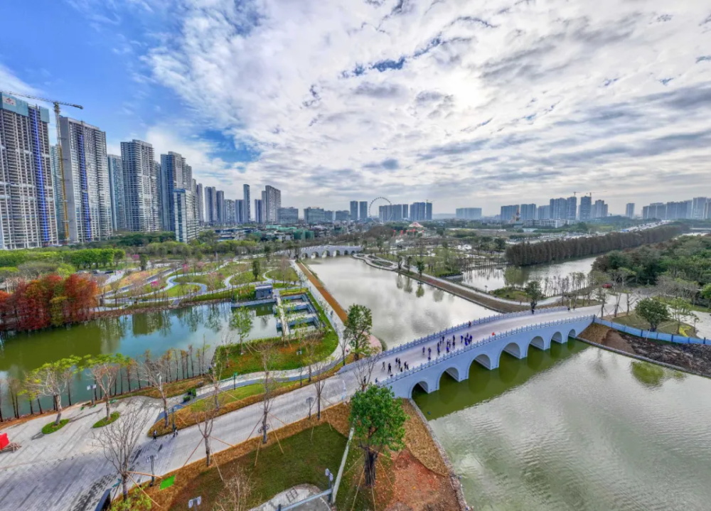 工程通过水轴体系全面打通+陆路相连,新建桂畔海人工河倒虹吸箱涵、桂畔湖与欢乐海岸人工湖水体连通及片区水环境整治三大部分主要建设内容,目前已全面完成并通过验收。